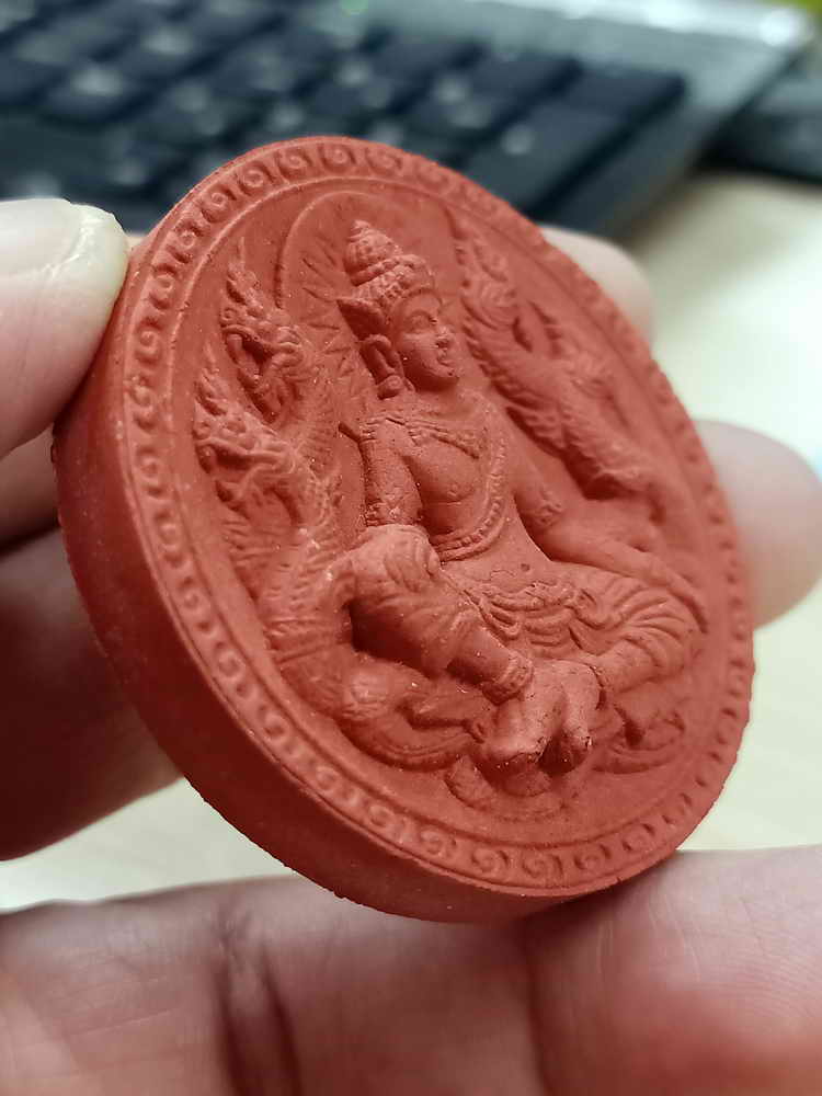 ซึ่งรูปแบบนี้ท่านได้ทำมาจากพระผงเนื้อดินเผา อายุกว่า 1200 ปี ด้านหน้าเป็นองค์จตุคาม-รามเทพ