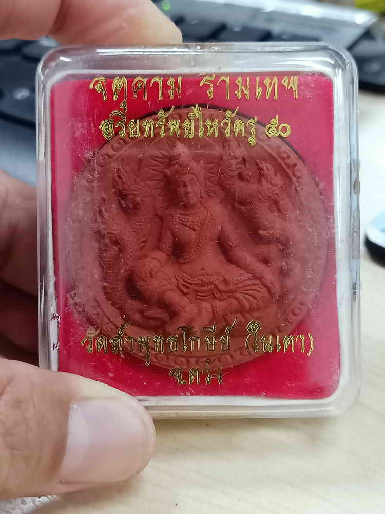 อายุกว่า 1,200 ปี ประทับไว้ด้านหลังทรงน้ำตาลแว่น ร่น " อริยทรัพย์ ไหว้ครู50