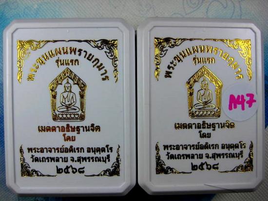 พระผงขุนแผนพรายกุมาร รุ่นแรก ร่วมบุญบูรณะศาลาการเปรียญ ณ วัดเถรพลาย จ.สุพรรณบุรี พระอาจารย์อดิเรก อนุตฺตโร วัดหนองทราย เมตตา ออกแบบ และเขียนอักขระยันต์ และเมตตานั่งปกอธิษฐานจิต (---A47---) |