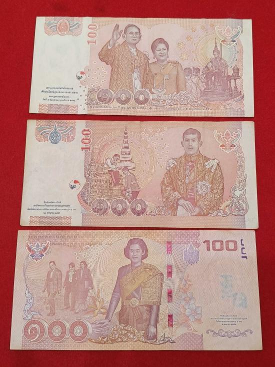 ธนบัตร 100 บาท 3 วาระ สภาพผ่านการใช้งาน
