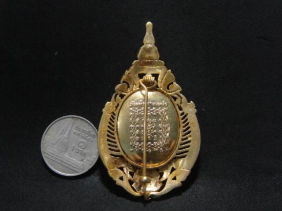 เข็มกลัดหลวงพ่อฤาษีลิงดำ วัดท่าซุง จ.อุทัยธานี ที่ระลึกงานครบรอบวันเกิด ปี2542 เนื้อกะไหล่ทองลงยาฝังพลอย สวยคากล่องเดิม