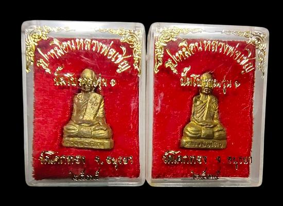 พระรูปเหมือนปั๊ม โบราณ รุ่นแรก หลวงพ่อเชิญ วัดโคกทอง เนื้อทองฝาบาตร พร้อมกล่องเดิม ปี 2535( จำนวน 2องค์ ) |