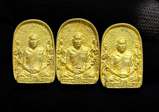 วัดใจ เหรียญหล่อเนื้อทองผสม ยก 3 เหรียญ หลวงพ่อลี วัดอโศการาม จ.สมุทรปราการ รุ่นสร้างพระเจดีย์ |