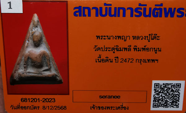 พระนางพญา หลวงปู่โต๊ะ วัดประดู่ฉิมพลี พิมพ์อกนูน เนื้อดิน ปี2472 + บัตรG-pra สภาพเดิมค่ะ |