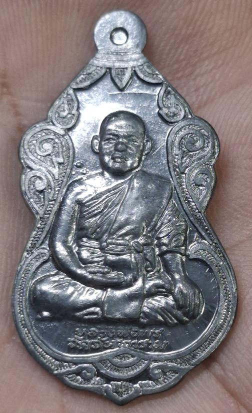 เหรียญน้ำเต้า พระอาจารย์สมพร ถาวโร วัดจันทาราม ปทุมธานี เนื้อตะกั่วหลังเรียบ จารมือ |