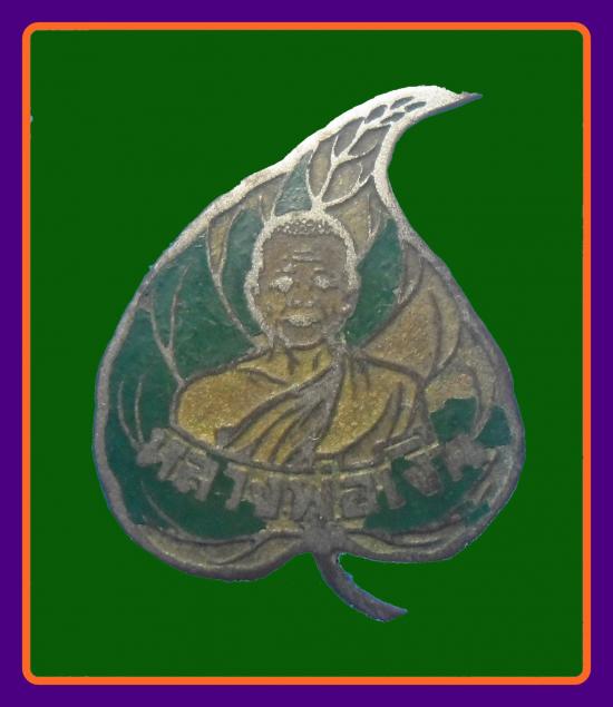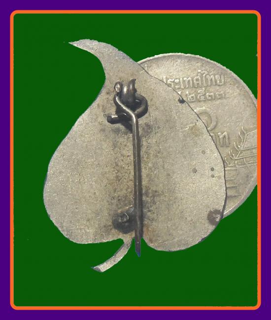 150-เข็มกลัดลงสี รูปใบโพธิ์ หลวงพ่อเงิน วัดดอนยายหอม นครปฐม พศ.2517 |