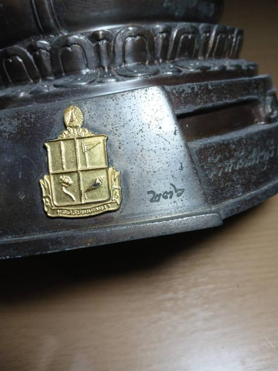 ชื่อพระเครื่อง พระพุทธนิรโรคันตรายชัยวัฒน์จตุรทิศ วัดมงคลชัยพัฒนา จ.สระบุรี มูลนิธิชัยพัฒนา พ.ศ.2539 หน้าตัก 6 นิ้ว ฐานมีตราภปร. เนื้อโลหะรมมันปูผิวหิ้ง