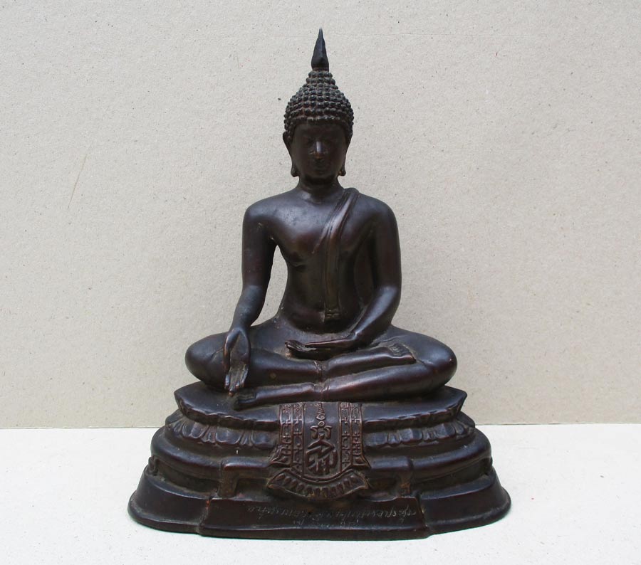 พระบูชาปางประทานพร ฐานผ้าทิพย์มีอักษรย่อ ส.น.ม. อนุสรณ์วางศิลาฤกษ์หอประชุม 7 มี.ค.17 เนื้อโลหะวรรณะแดงมันเทศ เทดินไทย !!