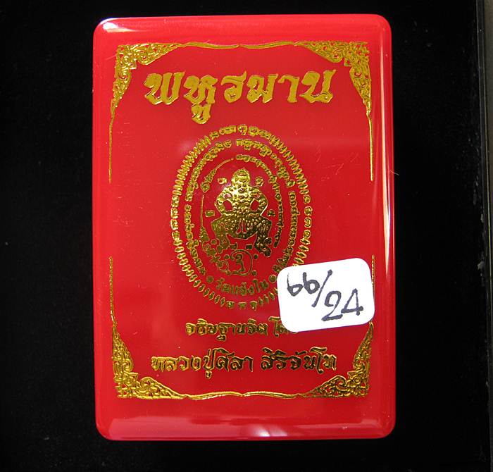 พระสมเด็จทรงหนุมาน รุ่น "พหูรมาน" วัดแจ้งใน จ.นครราชสีมา "หลวงปู่ศิลา เมตตาอธิษฐานจิต" ปี 2568 เนื้อผงน้ำมันโบราณขาวเกษรตะกรุดทอง 4 ดอก ฝังเพชร ป้ายรวยเงินทอง # 24 กล่องเดิมครับ |