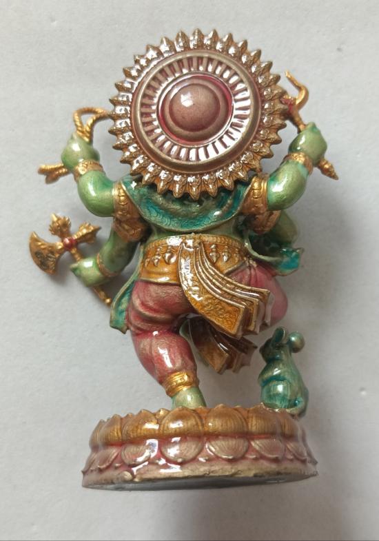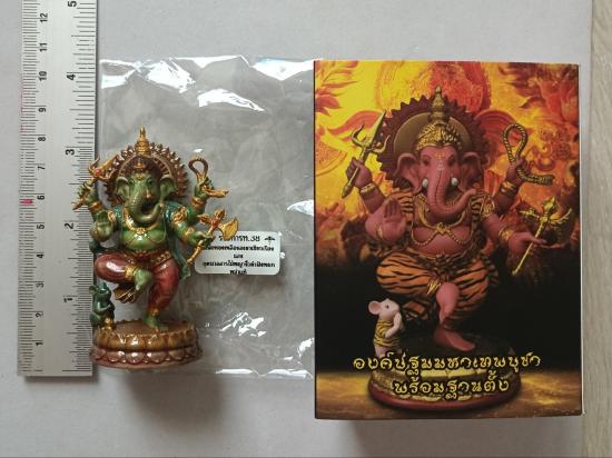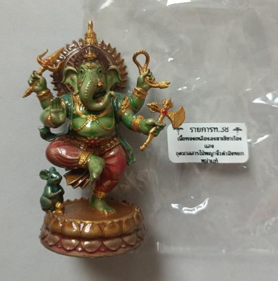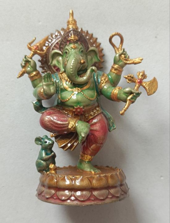 วัดใจเคาะเดียวแดงจ้า พระบูชาพระพิฆเนศ ขนาดบูชา3นิ้ว เนื้อทองเหลืองลงยาเขียวเรืองแสง อุดมวลสารไม้พญางิ้วดำฝังหยกพม่าแท้ งานพุทธศิลป์ เคาะเดียวแดงจ้า