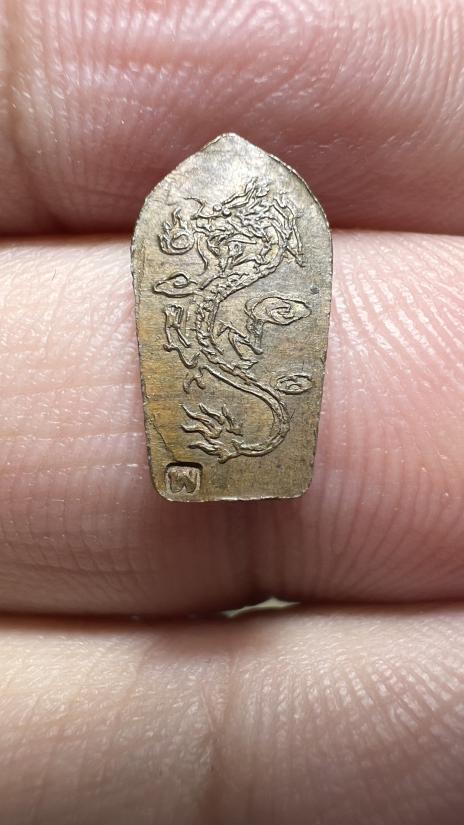 พระปรกใบมะขาม หลังมังกร หลวงพ่อไพบูลย์ สุมังคโล วัดอนาลโย พะเยา ด้านหลังตอกโค๊ต