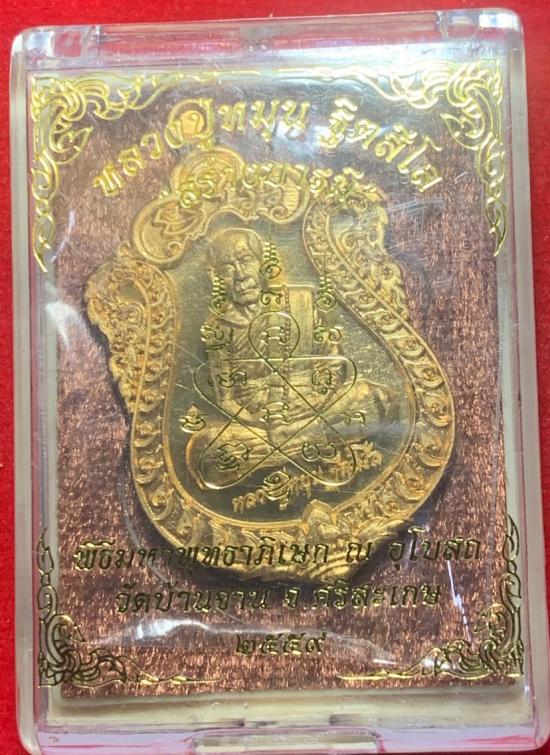 เหรียญเสมา รุ่นสร้างบารมี หลวงปู่หมุน ฐิตสีโล วัดบ้านจาน ศรีสะเกษ 2559 เนื้อกะไหล่ทอง