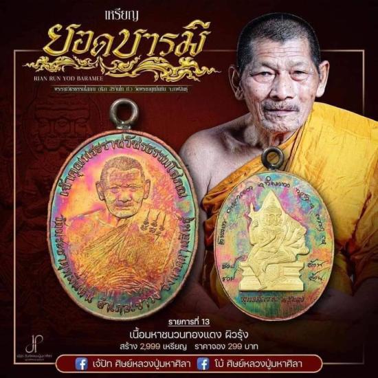 หลวงปู่มหาศิลา เหรียญแกะสด ห่วงเชื่อม ไหว้ครูปี2567 รุ่น ยอดบารมี เนื้อมหาชนวนทองแดงผิวรุ่ง หลังหน้ากากพรหมทองสำเร็จ ใบฝอย+กล่องครบ เลข842 |