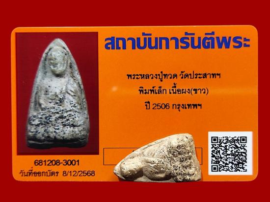 ชื่อพระเครื่อง ...พระหลวงปู่ทวด วัดประสาทๆ พิมพ์เล็ก(อาปาเช่) เนื้อผงขาว นิยมหาอยาก ปี2506 กรุงเทพๆ พร้อมบัตรG-PRA