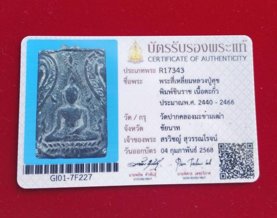 พระสี่เหลี่ยมหลวงปู่ศุข พิมพ์ชินราช เนื้อตะกั่ว 2440 - 2466 วัดปากคลองมะขามเฒ่า ชัยนาท