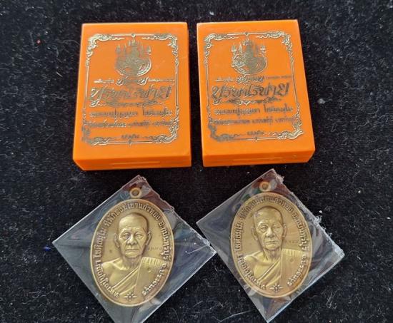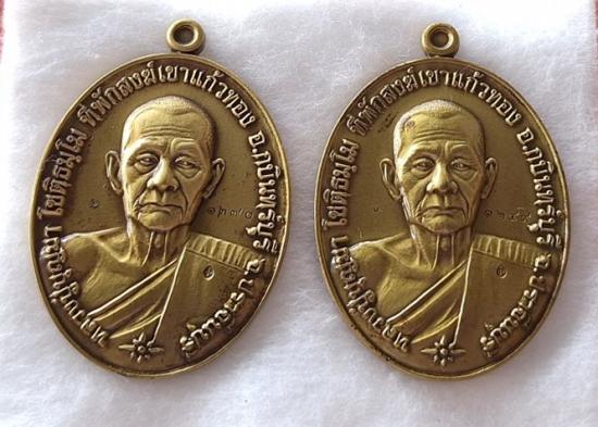 หลวงปู่บุญมา โชติธมุโม จ.ปราจีนบุรี รุ่นชนะจน เนื้อทองเหลืองซาติน 2เหรียญ No.1370+1249 |