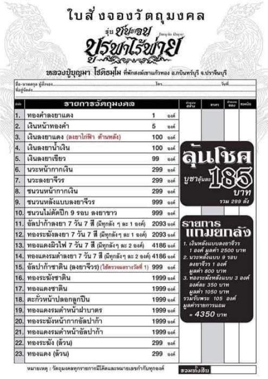 รายการลุ้นเนื้อ เหรียญรุ่นชนะจน บรูพาไร้พ่าย พร้อมกล่อง ปี2564 |