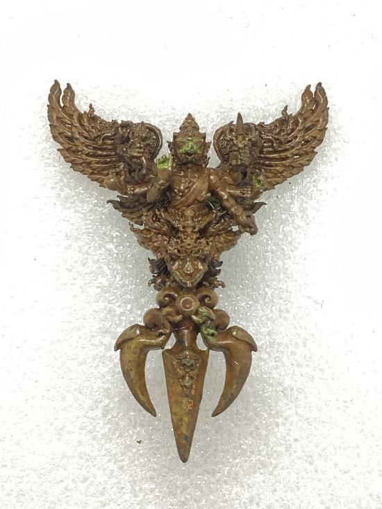 เคาะเดียวแดง 150 วัชระพญาสุบรรณมังรายศาสตร์ เศรษฐีอนันตทรัพย์ พระอาจารย์วิรุต วัดสันมะเหม้า จ.เชียงราย เนื้อสนิมแดงล้านนา ขัดยาดำ สูง 4 ซ.ม. พิมพ์ใหญ่ กล่องเดิม |