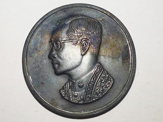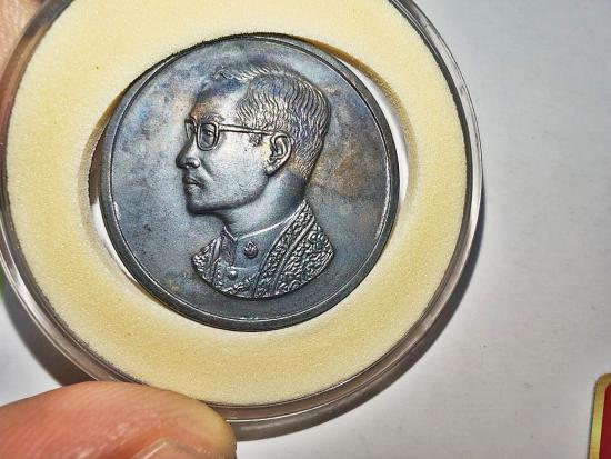 เหรียญในหลวง รัชกาลที่ 9 รุ่นคุ้มเกล้า สร้าง พศ 2522 เนื้อนวะโลหะ ในตลับพลาสติกกลมเดิมๆ |