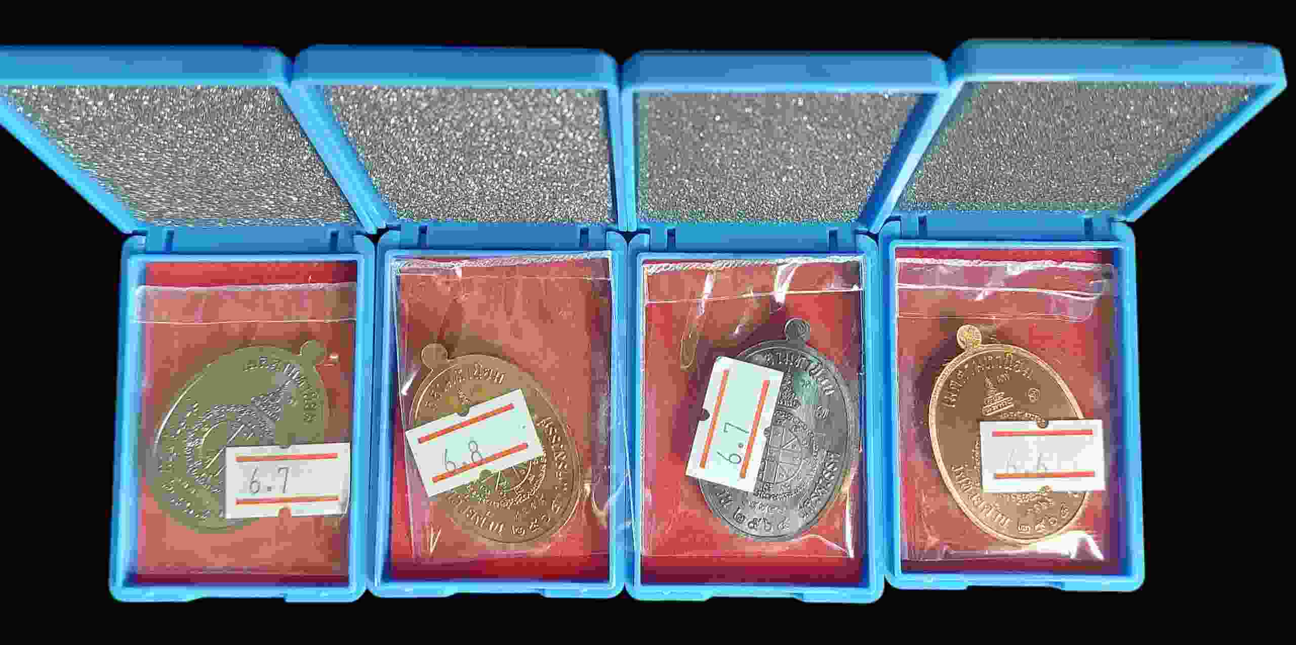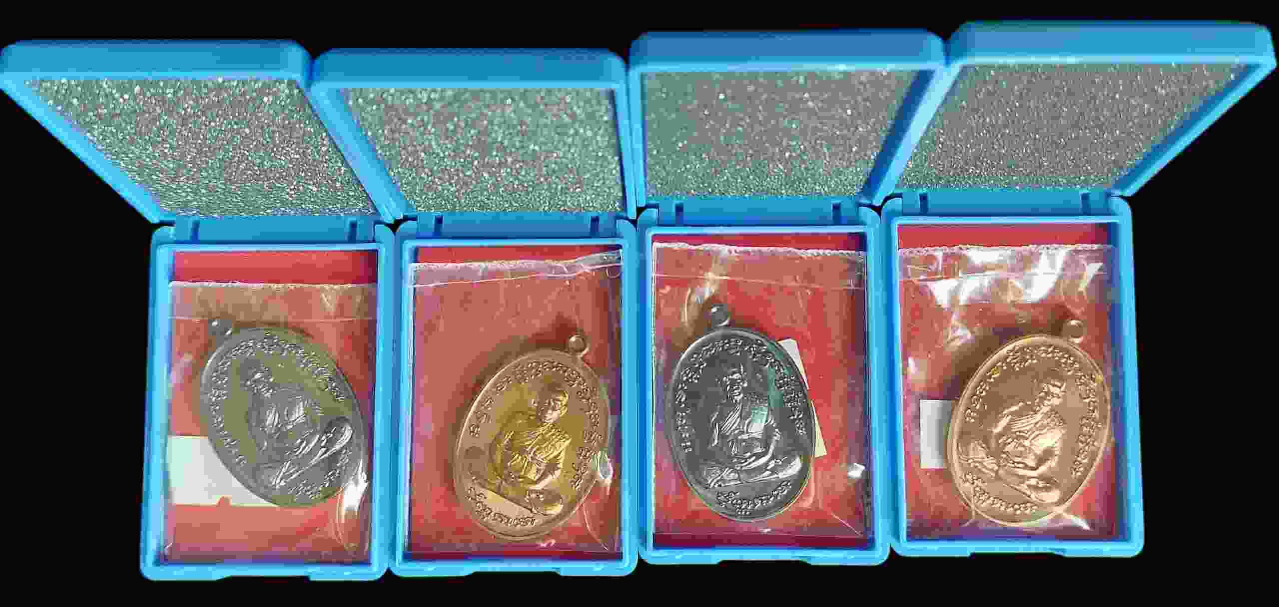 วัดใจเคาะเดียวแดง เหรียญรูปไข่ เต็มองค์ รุ่นเจริญพรกลาง หลวงพ่อพัฒน์ ปุญญกาโม วัดห้วยด้วน จ.นครสวรรค์ จำนวน 4 องค์