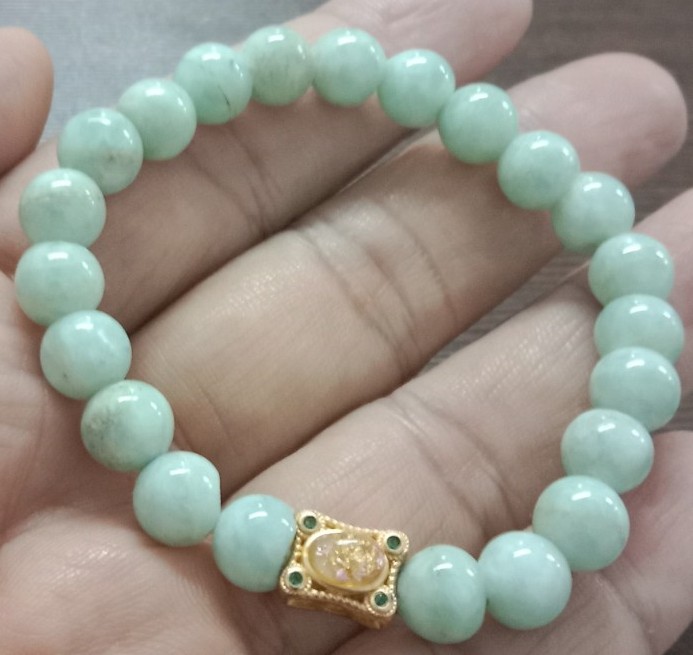 สร้อยข้อมือ(หยกพม่า)/ขนาด8มิล/ร้อยยางยืดใส่สบาย/สินค้ามือ1/เส้นที่2 |