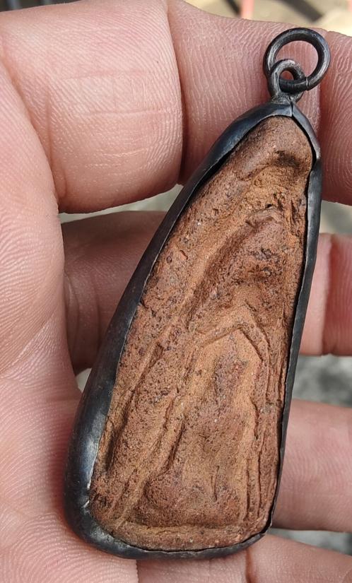พระหัวใจกำแพงเนื้อดิน สุโขทัย เลี่ยมเงินเก่า