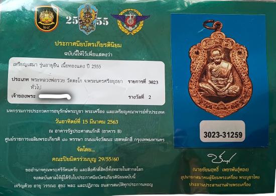 วัดใจเคาะเดียว เหรียญหลวงพ่อรวย วัดตะโก รุ่นอายุยืน เนื้อทองแดง ราฃวัลที่ 2 งานศูนย์ราชการแจ้งวัฒนะ |