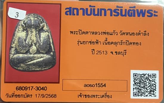 ปิดตาหลวงพ่อแก้ว วัดหนองตำลึง 2513 รุ่นยกช่อฟ้า เนื้อคลุกรักษ์ ปิดทอง