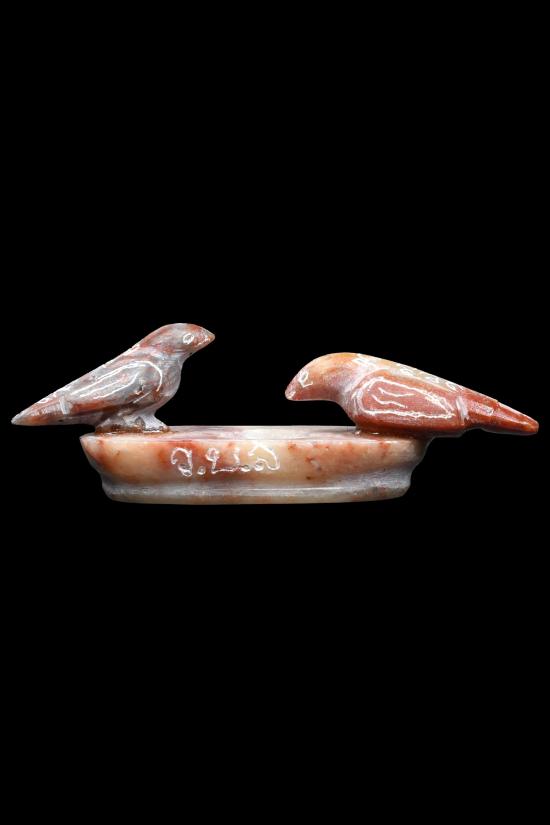 นกสาริกาคู่หินแกะ (เนื้อหินสบู่) หลวงพ่อสนิท วัดลำบัวลอย จ.นครนายก เก่าๆ สร้างน้อย หายากมาก เป็นยุคเดียวกันกับเต่าหิน อีกหนึ่งสุดยอดเมตตา มหานิยม ของหลวงพ่อสนิท สร้างจากวัสดุหินอ่อนหรือ หินสบู่ |