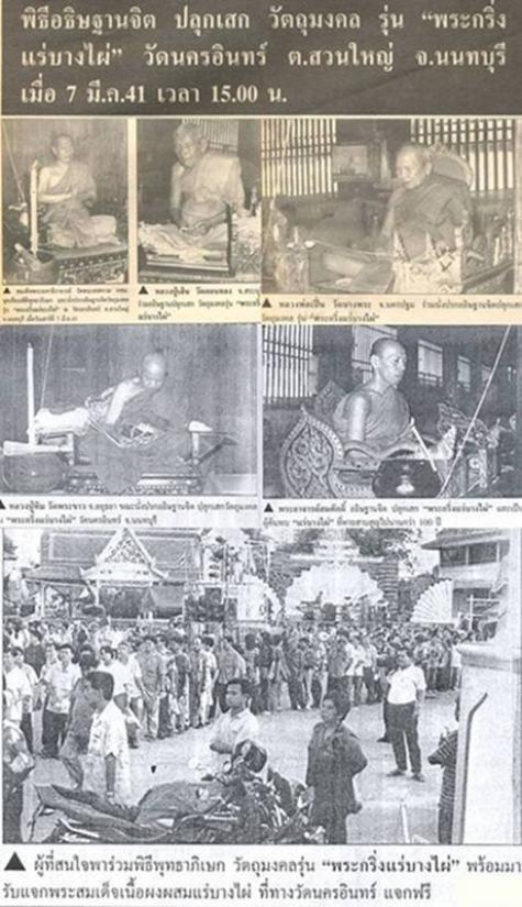 พิธีพุทธภิเษกที่วัดนครอินทร์ ในวันเสาร์ ที่ ๗ มีนาคม ๒๕๔๑ เวลา ๑๕.๐๐ น.