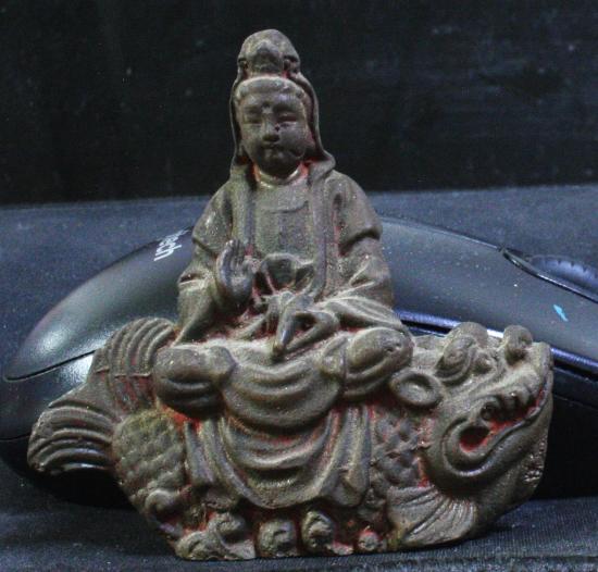 รูปหล่อโลหะ เจ้าแม่กวนอิม ประทับบนปลามังกร สวย คลาสิค ไม่ทราบที่ ชมก่อน |