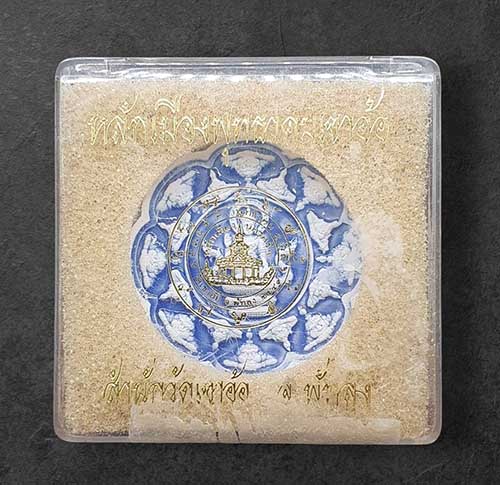 หลักเมืองพุทธาคม เขาอ้อ ปี 49 เคลือบน้ำเงินกังใส