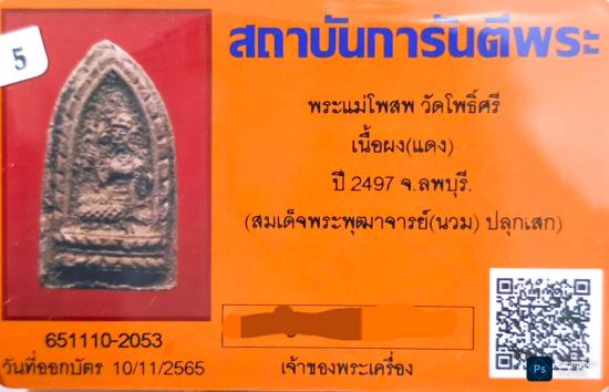 พระแม่โพสพ วัดโพธิ์ศรี ปี 2497 มวลสาร ผงวิเศษหลวงปู่ศุข วัดปากคลองมะขามเฒ่า ผงบดสมเด็จชำรุดกรุวัดระฆังและวัดบางขุนพรหม ผงบดพระกรุยุคเก่าที่ชำรุดจาก กรุวัดชนะสงคราม, กรุวัดสามปลื้ม, กรุวัดท้ายตลาด,กรุวัดเงินคลองเตย,ผงน้ำมันวัดอนงคาราม,ผงสมเด็จพระสังฆราช (แพ) วัดสุทัศน์,ผงมหาโสฬสมงคล หลวงปู่เอี่ยม.ปู่เอี่ยม วัดหนัง,ซึ่งเป็นผงที่สมเด็จพุฒาจารย์นวม วัดอนงค์เก็บสะสมแล้วนำมามอบในการสร้างวัตถุมงคลวัดโพธ์ศรี และท่าน สมเด็จพุฒาจารย์นวม ปลุกเสก แม่โพสพ ในพิธีกวนข้าวทิพย์มธุปายาส วัดโพธิ์ศรี จ.ลพบุรี ปี 2497 พระแม่โพสพรุ่นนี้สร้างและปลุกเสกในโอกาสจัดงานประเพณีกวนข้าวมธุปายาส ณ วัดโพธิ์ศรี ต.บางงา อ.ท่าวุ้ง จ.ลพบุรี เมื่อวันที่ 16 17 พ.ค. ปี 2497 พระแม่โพสพรุ่นนี้ สร้างด้วยเนื้อข้าวพิพย์เพียงสองกะทะ ได้พระทั้งหมดประมาณไม่น่าเกินกว่า 2,000 องค์ ที่พบเห็นจะมีสองวรรณะ คือเหลืองนวลจางๆ (แก่ผง) และสีเข้มออกส้ม (แก่ข้าวทิพย์) หลังเสร็จพิธีสมเด็จพุฒาจารย์นวม ท่านได้นำพระแม่โพสพรุ่นนี้กลับไปแจกให้แก่ผู้มีจิตศรัทธาบริจาคเงินร่วมทำบุญ พระแม่โพสพ พิธีกวนข้าวทิพย์มธุปายาส วัดโพธิ์ศรี จ.ลพบุรี จัดสร้างขึ้นในปี พ.ศ. 2497 มีพุทธคุณเด่นด้านเมตตา และเจริญในโภคทรัพย์ ส่วนประสบการณ์ของผู้ที่บูชาติดตัว เกือบทุกท่านบอกว่าทำมาหากินคล่อง เจราจาต่อรองใดมักจะได้รับความสำเร็จสมประสงค์อยู่เสมอ เนื่องจากข้าวทิพย์เป็นอาหารมื้อสุดท้ายที่ทำให้พระพุทธองค์ได้ทรงตรัสรู้ ดังนั้นหากใครได้ทำบุญหรือบูชาข้าวทิพย์ จึงทำให้ผู้บูชามีอานิสงค์ให้เกิดปัญญา และสามารถหลุดพ้นจากทุกข์ภัยต่างๆ ตลอดจนปัญหาชีวิตได้อย่างน่าอัศจรรย์ นอกจากนั้นบรรรดาทวยเทพเทวดาต่างๆ ที่ลงมาร่วมสร้างกุศลในพิธีกวนข้าวทิพย์ย่อมประสิทธ์ประสาทพรให้เกิดความสุข ความเจริญแก่ผู้ที่บูชาพระแม่โพสพเนื้อข้าวทิพย์นี้อีกด้วย