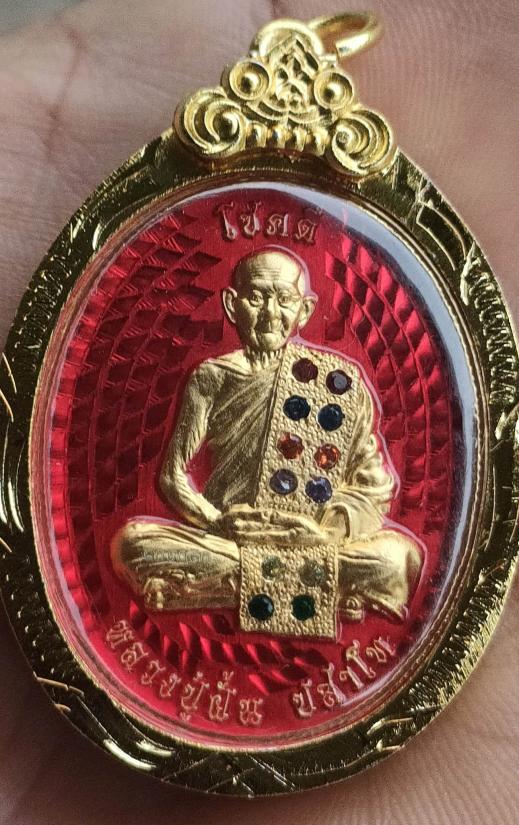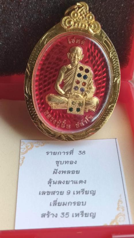 เหรียญ"โชคดี" หลวงปู่ฝั้น ปสาโท วัดศรีถมอรัตนฺ์(วัดหน้าผา)เพชรบูรณ์ เนื้อชุบทอง คุ้ยพื้นลงยาแดงหน้า-หลัง ฝังพลอยเต็มสังฆาฏิ(12เม็ด)เลี่ยมทองไมครอนกันน้ำ หมายเลข ๓๓๓ พร้อมกล่อง ศิษย์ลพ.เดิมวัดหนองโพ |