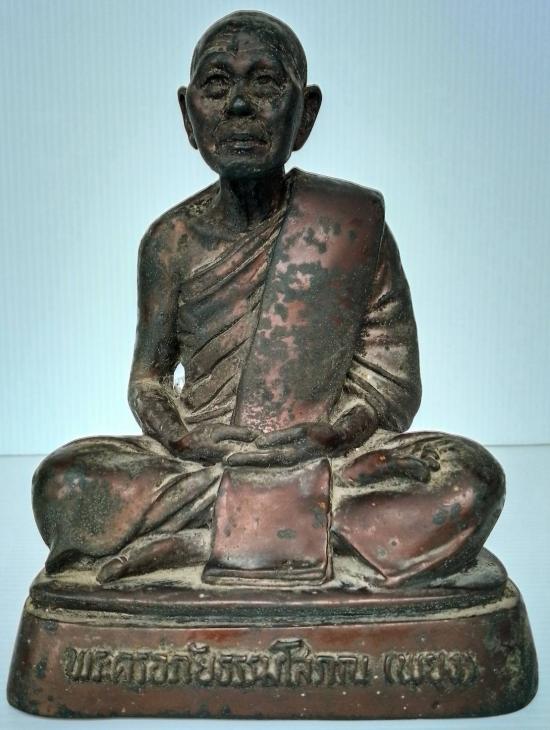 รายละเอียด พระบูชาพระครูอภัยธรรมโสภณ (พยุง) ที่ระลึกงานฝังลูกนิมิตวัดท่าโขรง จังหวัดราชบุรี ขนาดหน้าตัก 4.5 นิ้ว สูง 7 นิ้ว เนื้อโลหะ สภาพผิวหิ้ง