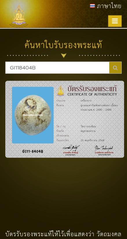 ลูกอมมหากัณฑ์หลวงพ่อคง วัดบางกะพ้อม มาพร้อมบัตรสมาคมพระเครื่องพระบูชาไทย |