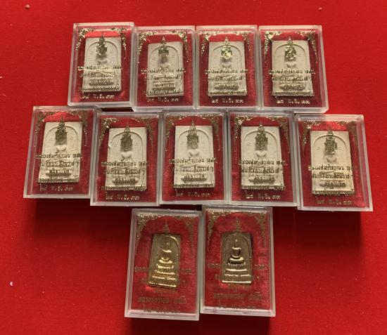 วัดใจ40 หลวงพ่อเกษม เขมโก รุ่น ญสส. เนื้อทองฝาบาตร 2องค์ และ เนื้อผง 9องค์ รวม11องค์ พระสังฆราชทรงอธิฐานจิต ปี 2533 กล่องเดิม