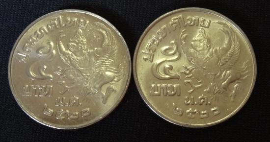 เหรียญ ในหลวงร.9 5 บาท ครุฑเฉียง ปี20 unc รวม2เหรียญ น้ำทองสวย วิ้งๆๆ |