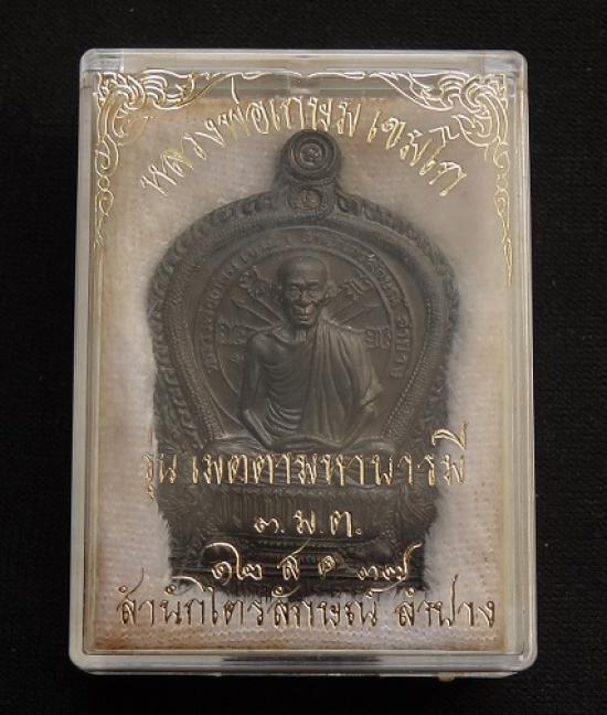เหรียญนั่งพาน 3 ม.ต. เนื้อนวะ หลวงพ่อเกษม เขมโก ปี2537 เลขโค้ด 2405 สวยๆ พร้อมกล่องเดิมหายาก