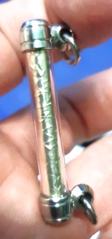 ตะกรุดจารเนื้อเงิน หลวงปู่กาหลง วัดเขี้ยวแก้ว ปี2546 ยาวประมาณ 4 เซนติเมตร พุทธคุณเน้นด้านการป้องกันคุณไสยมนต์ดำ ด้านป้องกันกันเสนียด ด้านป้องกันภูตผีปิศาจ วิญญาณอาฆาต สัพพเวสีตัวตายตัวแทน ผีปอป และพวกลมเพลมพัด เท่านั้นใครกลัวผีหรือเดินทางเขาป่าเขาเดินทางตอนกลางคืน แนะนำพกติดตัวไว้เลยครับหรือเด็กเกิดใหม่มีสิ่งที่มองไม่เห็นกวนร้องไม่ทราบสาเหตุ ลองห้อยที่หัวเปลดูครับ ตะกรุดหลวงปู่กาหลง เนื้อเงินยาวประมาณ 4ซม. สร้าง ปี 2546 จำนวนไม่ถึง100ดอก รูปถ่ายหลวงปู่กาหลงท่านลงยันต์ครู ล้อมด้วยคาถาอาคมตัวอักขระขอมหลวงปู่กาหลงเขี้ยวแก้ว ท่องก่อนอาราธนาตะกรุดติดตัว อะระหังปูชาสการัง อะระโหปาปะการะยัง อะระหัตตะผลัปปัตโต อะระโหหลวงปู่กาหลง นามะเตนะโมอะระหัง มีดอกเดียวนานๆจะมีมาให้เห็นครับ เป็นตะกรุดที่หลวงปู่กาหลงปลุกเสกเด่นเฉพาะทางด้านแองกันภูผีปิศาจสิ่งที่มองไม่เห็น คุณไสยมนต์ดำ