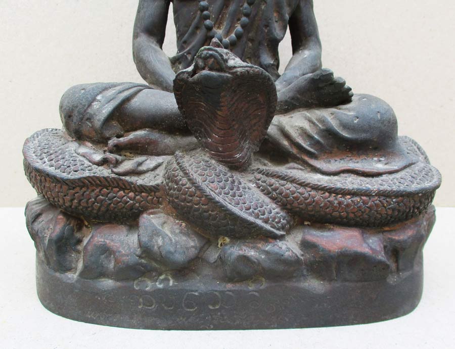 อริยะบท....นั่งบริกรรมบนฐานภูเขาหิน มีพญางูจงอางขดตัวรองรับ !!