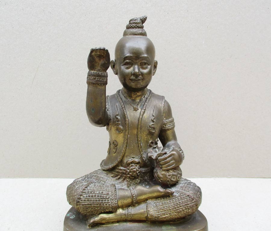เทพกุมารทอง เมตตา มหลาภ วัดเทพปราณี จ.อุบลราชธานี หน้าตัก 5 นิ้ว ใต้ฐานอุดปูนเต็ม เนื้อโลหะขัดเงาผิวหิ้ง !!
