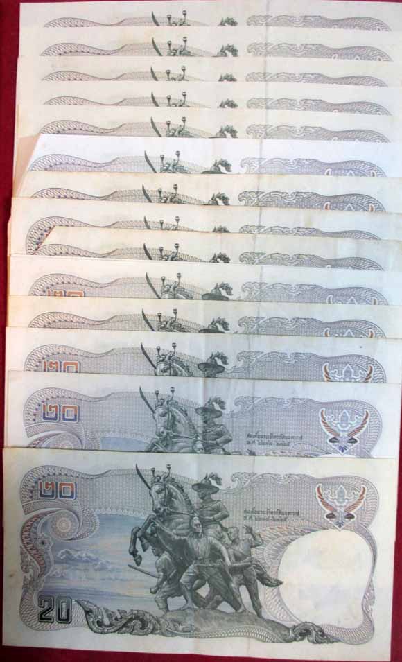 รายละเอียด ธนบัตรแบบ 12 ชนิดราคา 20 บาท ร.9 หลังพระเจ้าตากสินมหาราช จำนวน 15 ใบคละเลข ไม่ผ่านการใช้