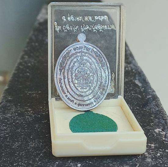 วัดใจ เหรียญ จริญพรจงเจริญ พระอาจารย์ต้อม วัดท่าสะแบง เนื้อนวะโลหะพรายเงินแยกชุดกรรมการที่สุดแห่งอักขระยันต์