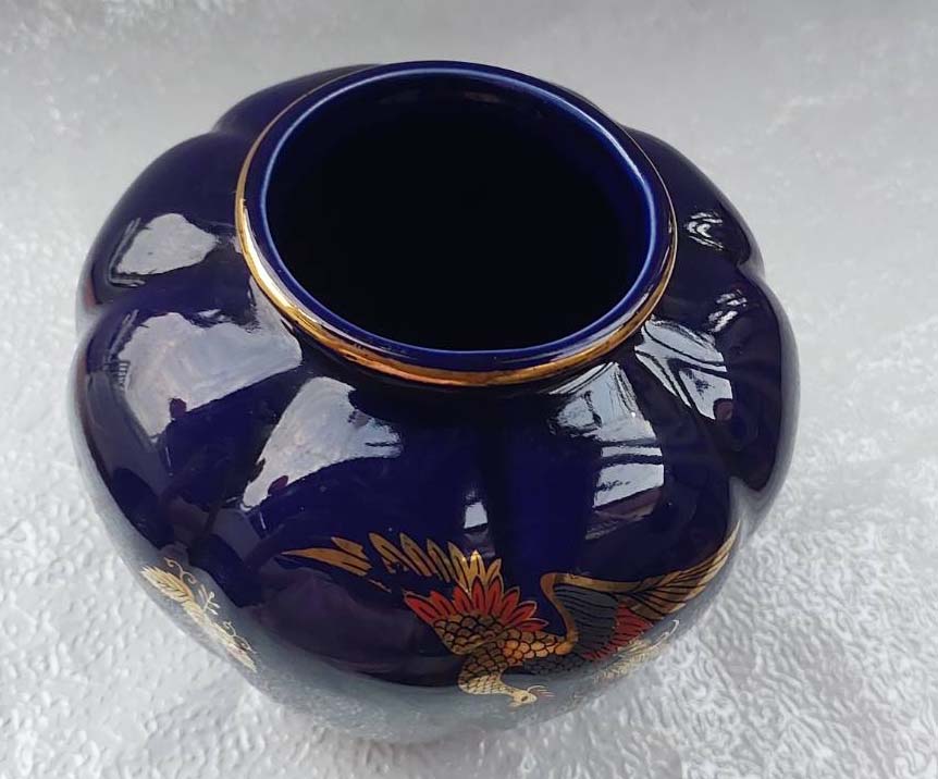 ***วัดใจ***แจกันเซรามิกญี่ปุ่น ทรงฟักทอง ของสะสม ปากกว้าง 3.5 นิ้ว สูง 6.5 นิ้ว ลายรูปนกฟีนิกซ์ เส้นทอง
