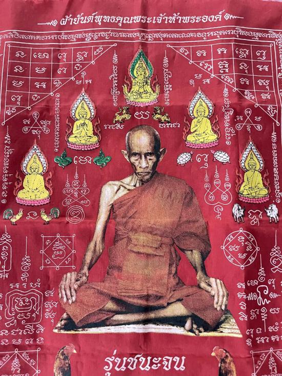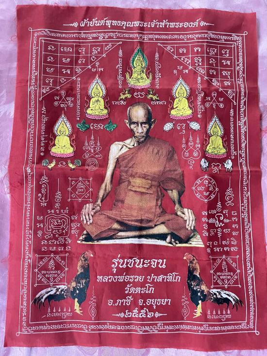 หลวงพ่อรวย วัดตะโก จ.อยุธยา ผ้ายันต์ รุ่นชนะจนปี2556 สีแดง นิยม