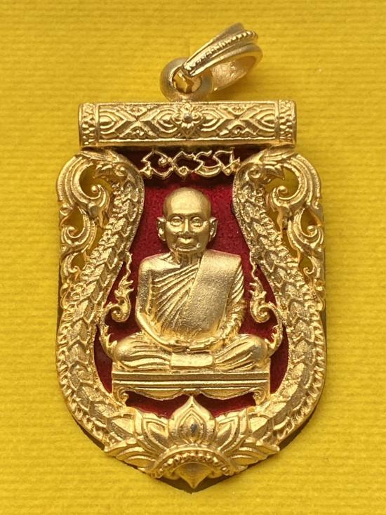 เคาะเดียวแดง พระสังฆราช รุ่น ทรงประทานพร เลข397 เนื้อ ชุบทองลงยาแดง |