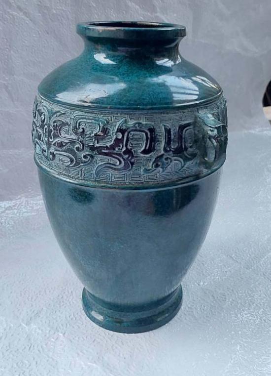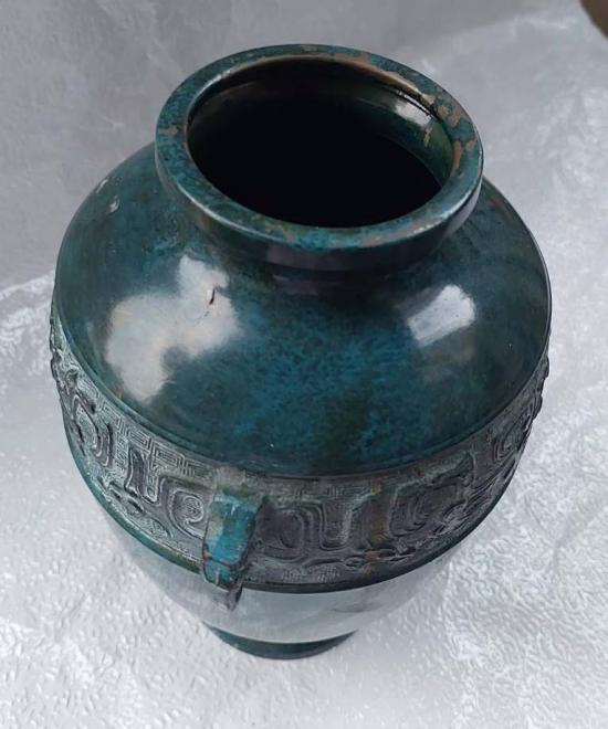 ***วัดใจ***แจกันเก่าเก็บทรงโบราณ หูมังกร เนื้อสำริด สูง 10 นิ้ว น้ำหนักเกือบ2 โล