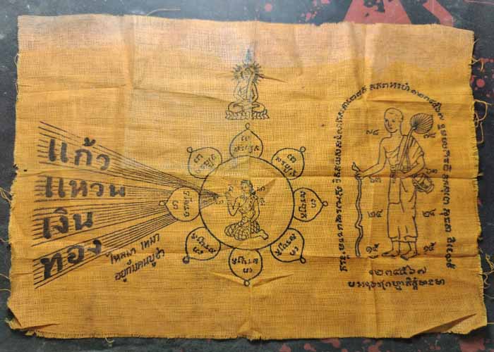 ผ้ายันต์ สิวลีนางกวัก แก้วแหวนเงินทองไหลมาเทมา หลวงปู่โต๊ะ วัดประดู่ฉิมพลี (ขนาด26X18ซม.)