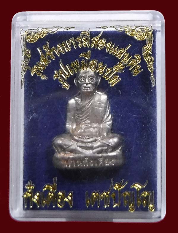 แดงที่เคาะแรก !!! รูปเหมือนปั๊ม เนื้อนวะโลหะ ท่านก๋งเตื่อง วัดคลองม่วง รุ่นสร้างบารมีสองแผ่นดิน (ตอกโค๊ต+หมายเลข 667) + กล่องเดิม